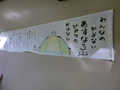 みんなの大好きなあすなろ山のひみつを全長13メートルの巻き巻き絵本仕立てにしました。たくさんのクラスで発表していこうと思ってます。