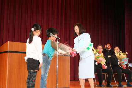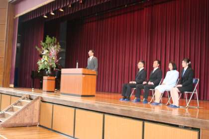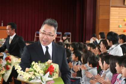 昨年度をもってこの学校を去られ、新しい学校へかわられた先生方とのお別れの式が行われました。どの先生も高雄小での思い出を語り、保護者や地域の方々への感謝の気持ちを述べられていました。
