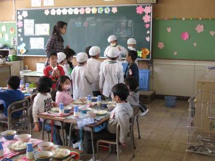 今日から1年生も給食が始まりました。