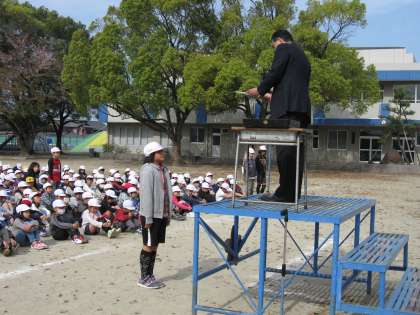 また、通学班の班長、副班長も校長先生からお言葉をいただきました。