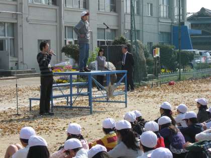 校長先生からこいのぼりの由来と鯉のように元気に育ってほしいとのお話がありました。