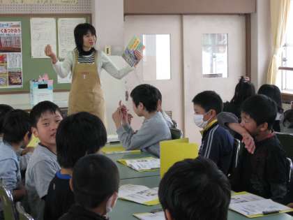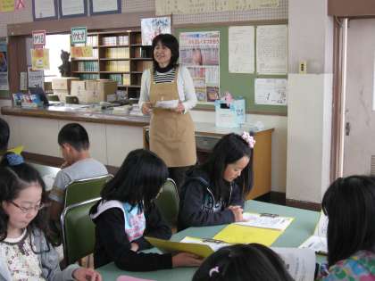 本の扱い方や本の分類について、クラスごとに話を聞きました。