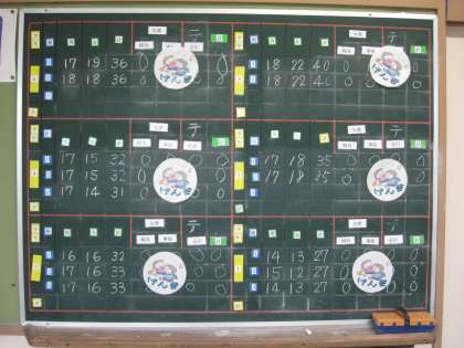 久しぶりの欠席ゼロです。保健室前の出欠黒板に6個の元気マーク(学年ごとの欠席ゼロマーク)が並びました。4月から散発していたB型インフルエンザもやっと終息したようです。元気が一番。全校児童496名そろう日が一日でも多いといいですね。