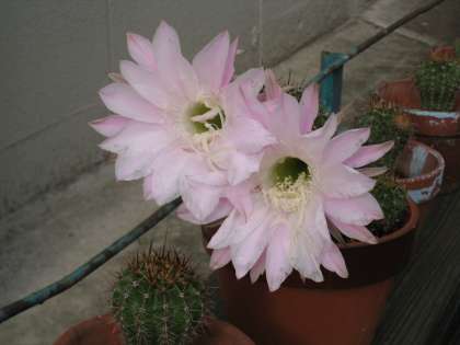 ふれあい学級で育てているサボテンが花を咲かせました。