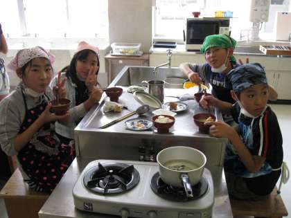 家庭科で味噌汁を作りました。