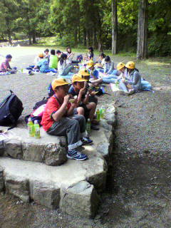 体験が終わり昼食です。メニューはとったマスとおにぎりです