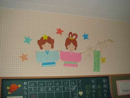 教室の背面からは、かわいいおりひめ様とひこぼし様が見守ってくれています。