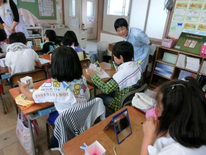 5日(金)には1組と3組でもはみがき教室を行いました。