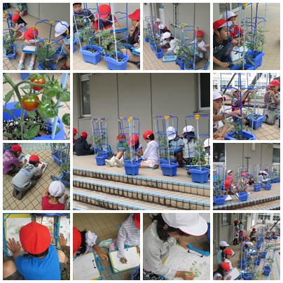「前とくらべて,トマトの実が大きくなって,色も少し赤くなっていました。」