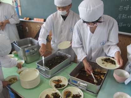 一昔前の給食では、ひじきを煮て給食献立に出すと、そのまますべて残って給食センターへかえってくるなんていう悲しいことがありました。でも、最近では和食が見直され、健康にも良いことなどが子どもたちの間にも浸透してきているようで、そのようなことはありません。