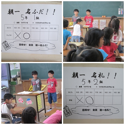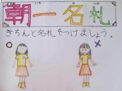クラスみんなでこえをかけ合って、パーフェクト朝一名札を目指しましょう!!