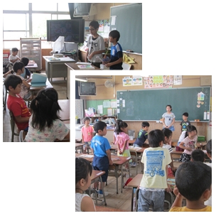 1年生のクラスをのぞいてみると「あと1人だけだった!おしい!」という声が聞こえてきました。もう一息のようです。1年生は、他の学年とはまだ名札のシステムが異なるため「表向きになっていたら達成」になっています。