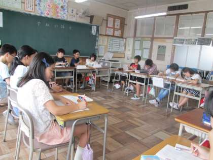 6年生は国語の学習で、グループごとで討論をしました。議題は「動物園の動物は幸せか不幸か」について討論しました。相手を説得させる的確な理由を主張したり、作戦タイムでは、グループで頭を寄せ合って相手の主張にどう答えるのかを考えていました。どのグループも相手の主張をよく聞いて討論を進めることができました。