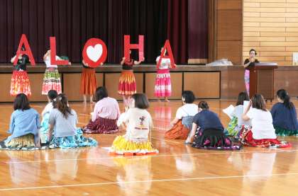 PTAの研修会で、フラダンスを学びました。講師として、川口良子先生(扶桑町フラダンス同好会 扶桑ハウオリーズ)を始めたくさんの方にきていただき、楽しく学ぶことができました。ゆったりとしたリズムは、心身の健康増進に大いに役立ちそうです。講師の皆様、ありがとうございました。