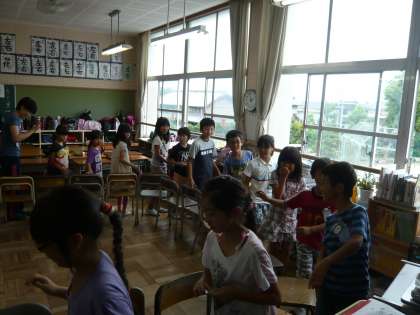 学級遊び係の子たちは,今週ずっと休憩時間を使って計画を練ってくれていました。今日の遊びは,いす取りゲームと,何でもバスケット。どちらのゲームもハイテンションで大盛り上がりでした。