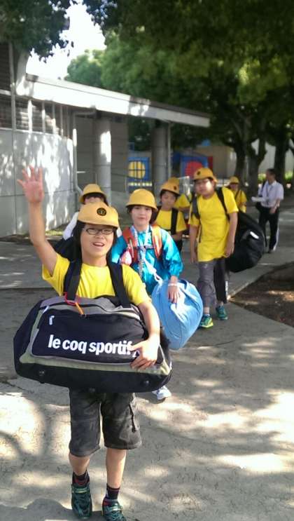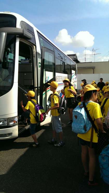 野外学習 バスに乗り込みました。