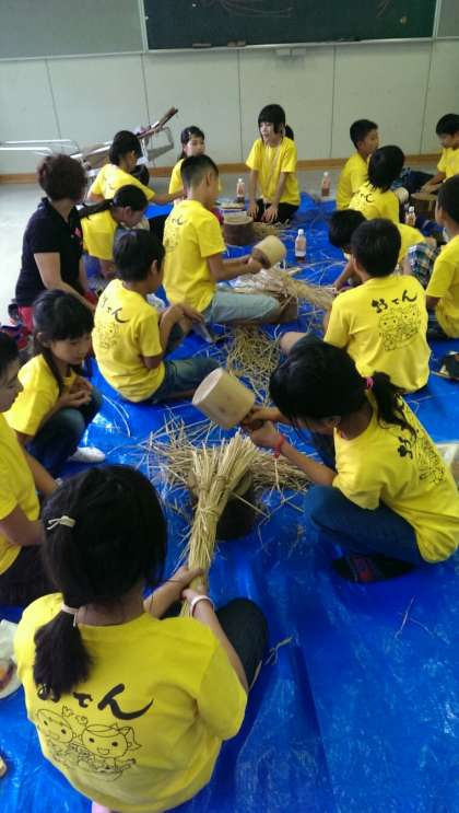 わらあみリース工房です。うまくわらを編めるでしょうか。