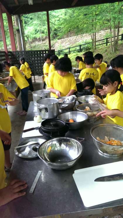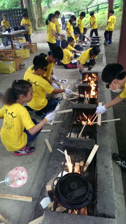 野外炊事、少々苦戦してます。おいしくできるでしょうか。