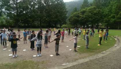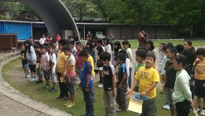 朝の集いで元気よくラジオ体操をしました。全員元気です。