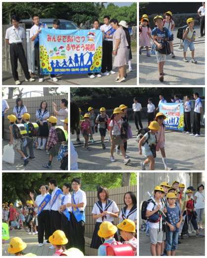 扶桑北中学校と山名小学校、高雄小学校の3校連携してあいさつ運動に取り組みました。本校の卒業生の中学生と中学校の先生が朝、校門に立ってくれて、爽やかなあいさつをしてくれました。6年生も登校した子から校門に並んで「あいさつロード」をつくりました。かっこいい中学生のお兄さんお姉さんの登場に、いつもよりにこやかで爽やかなあいさつができました。中学生のみなさん、先生方ありがとうございました。