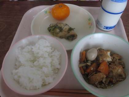 そのかわり厚揚げの煮物がおいしく食べられました。豚肉と厚揚げと一緒に、だいこんやごぼう、にんじん、うずら卵も煮含めました。一緒に食べた6の2のKちゃん。小柄ですが、いつも給食おいしいっていっぱい食べてくれます。
