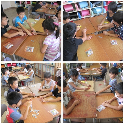 お金を使っての学習で、子どもたちはいつも以上にやる気満々!協力して答えを出すことができたということは、みんなでかしこくなれたということですね。