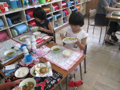 今日の2の1の給食時間はとても静かに食べていました。