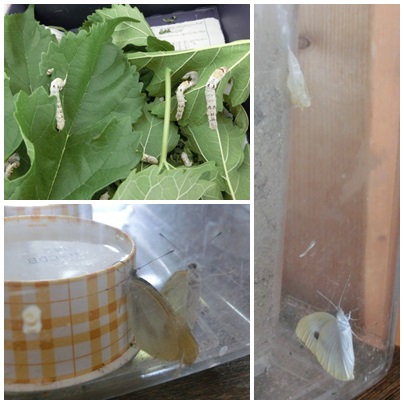 次にさなぎとなり、ついにモンシロチョウが出てきました。
