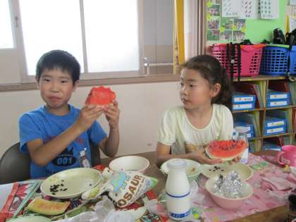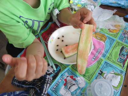すいかは旬のデザートです。毎年この時期に一度は給食に登場します。