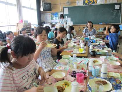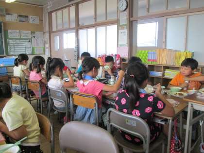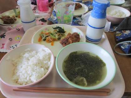 3の1では、みんなから「おいしー!」の言葉。調理員さんにしっかり伝えますね。