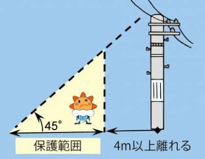 室内や車内に避難できないときは、つま先立ちになって、できるだけ体を低くくすることが大切です。高い木の下はかえって危険ですので、木や電信柱からは、2m〜4m離れましょう。
