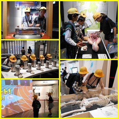 館内は、班ごとに計画を立ててまわりました。人体の不思議やエネルギーについて、実物を見たり楽しく体験したりして学んでいました。