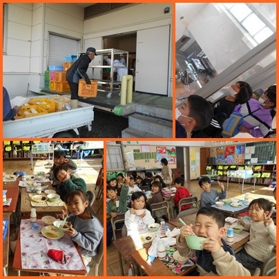 その後、学校に運ばれた給食を感謝しながら、おいしくいただきました。