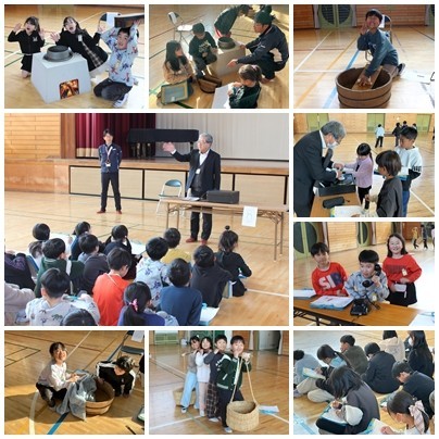 大口町の歴史民俗資料館の方に来ていただき、昔の道具について学びました。