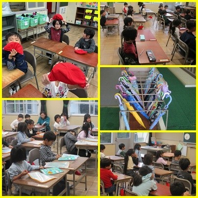 雨の中の登校でしたが、朝から自分で傘を閉じて、きれいに片付けることができました。