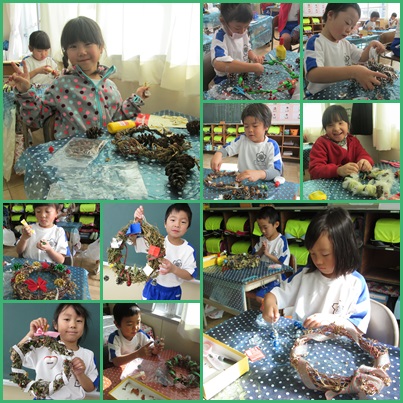 各自で集めてきた材料を工夫して飾り付け、世界に一つだけの素敵なリースができあがりました!!