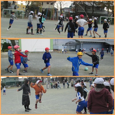 寒空の下,運動場のあちらこちらで,なわとび集会に向けて大縄跳びの練習をする子どもたちの姿が見られました。縄の回し方が上手になり,連続で飛ぶスピードもぐんぐんアップしています。
