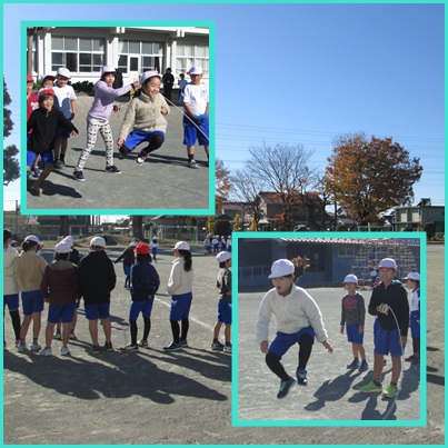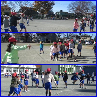 2時間目の休み時間には,運動場のあちらこちらで,子どもたちが縦割り班ごとに大縄の練習をしていました。