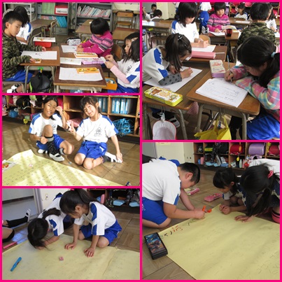 去年2年生に教えてもらったときのことを思い出したり,1年生に教えるのを楽しみにしたりしながら,グループで協力して活動していました。