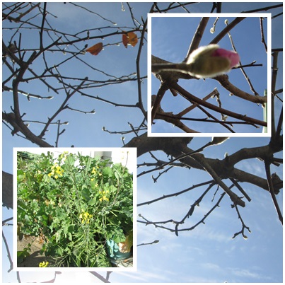 暖かい日が続き,職員室前のシデコブシのつぼみが開いてきました。菜の花も咲いています。