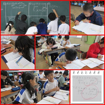 算数の時間,小数のかけ算の学習中です。