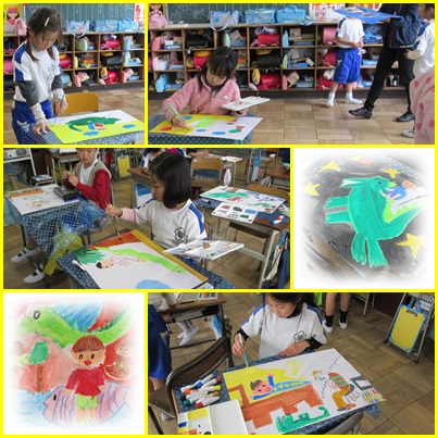 「ワニくんとパーティーにいったんだ」という本の感想画を描いていた2年生。