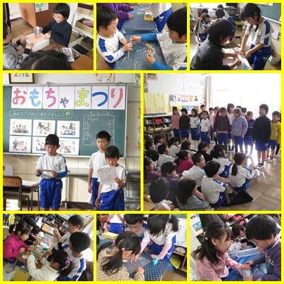 今日は1年生を招待して、おもちゃまつりを開きました。この日のためにグループで協力して準備をしてきた2年生。朝からわくわく笑顔いっぱいでした。