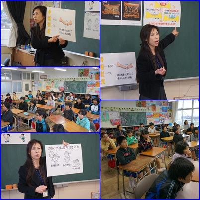栄養教諭の先生に、栄養についてのお話をしていただきました。今日のメインは「カルシウム」です。