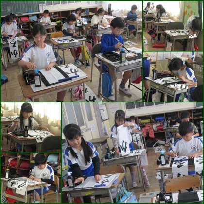 冬休みに家でも練習してきた、「かるた」の文字を、1画1画集中して書きます。