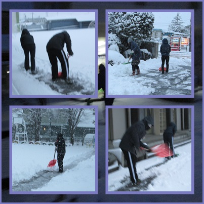 子どもたちの登校前に,職員で雪かきをしました。