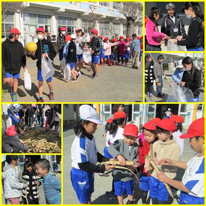 昼休み,体育館前に長い列が・・・。皆,手に袋を持っています。