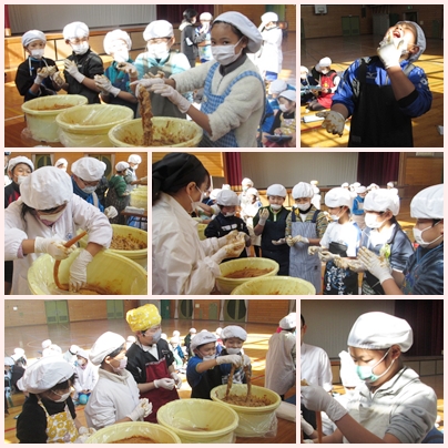 今回は2回目と言うことで,みんな慣れた手つきで守口大根を新しい漬け粕に漬け込みました。
