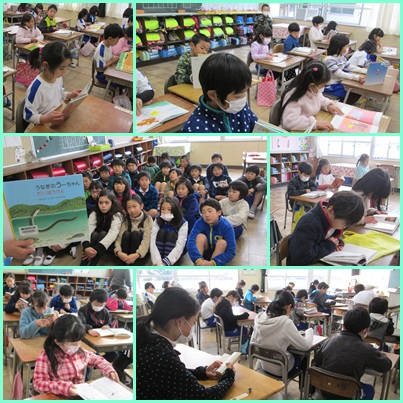 絵本の文字を声に出して読んでいた1年生も,黙って読むことができるようになってきました。