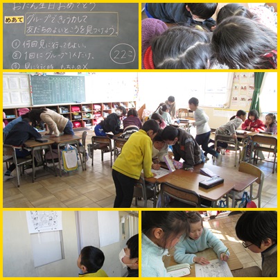 22個の間違いのうち、一番たくさん見つけたのは、17個見つけた2班でした。でも、たくさん見つけたことよりも大切なのは、友達のよいところを探すこと!